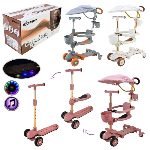 самокат триколісний, 2 колеса PU (світло), задне - пласт., батьк. ручка, складаний SC822 (3)