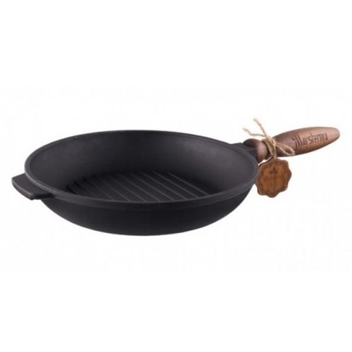 сковорідка-гриль чавунна лита 24х4см з дерев'яною ручкою Т308