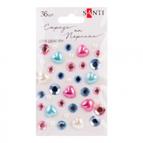 стрази Santi самоклеючі "Heart mix" блакитні/рожеві 36шт./бліст. 742999