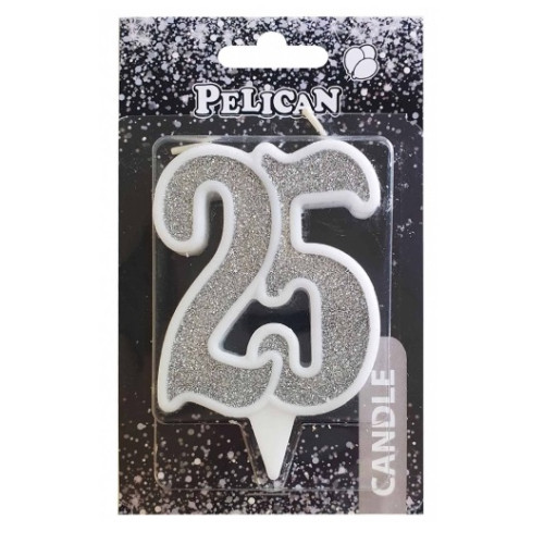 свічка для торту Pelican 7см. ювілейна срібло "25" 867225 (32)