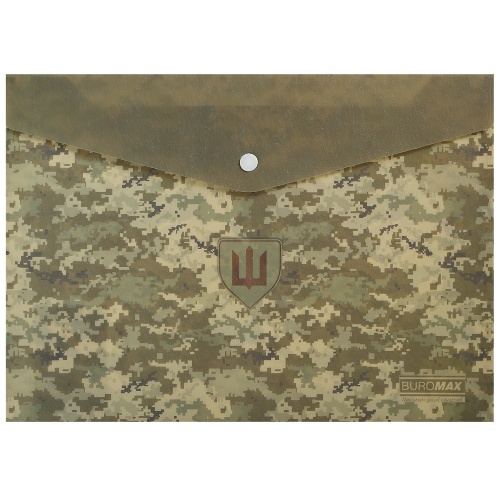 тека Buromax конверт на кнопці Military А4 пластикова непрозора матова зелена ВМ.3943-04 (12/360)