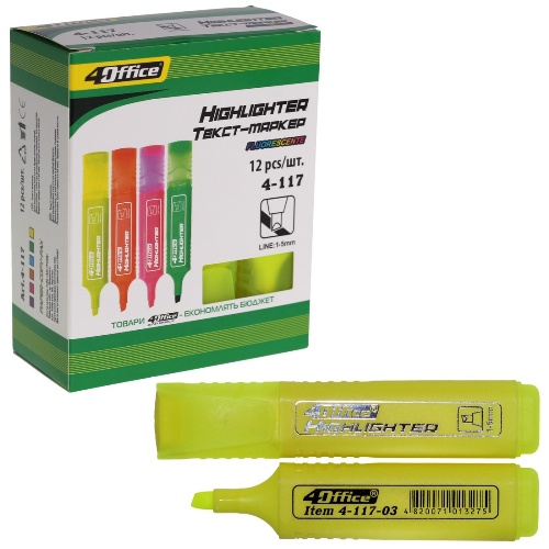текст-маркер 4Office 1-5мм. жовтий 4-117-03 (12/1200)