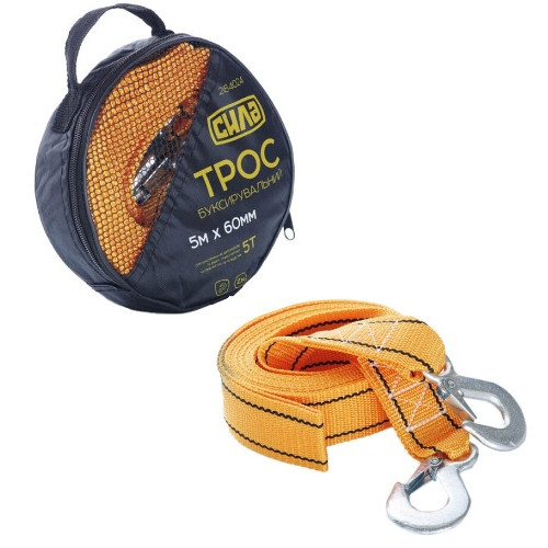 трос буксирувальний Сила 5 тонн, 5м.х60мм., гаки, в сумці 284024