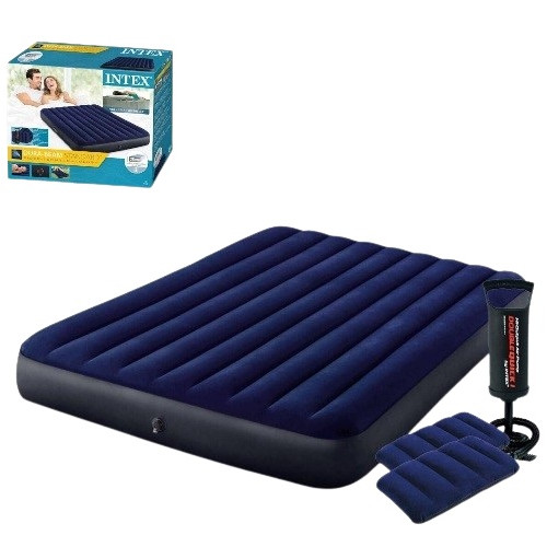 велюр. матрац 152х203х25см., до 272кг., 2 подушки, ручний насос, синій, в кор. 64765 (3)