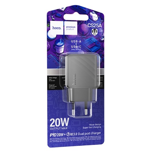 зарядний пристрій Hoco Rico PD20W + QC3.0 на USB + 1 Type-C CS25A