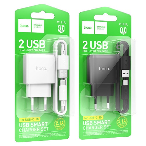 зарядний пристрій Hoco Smart dual на 2 USB + шнур Type-C C141A