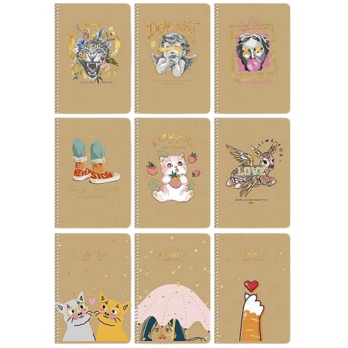 зошит на спіралі Школярик А5 96арк. крафт, тиснення, крем. блок, кліт. A5-SC-096-6132K (1/54)